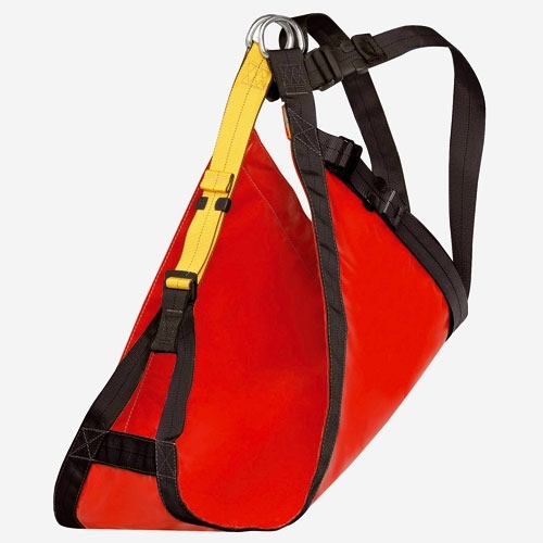 - die Schulterträger verhindern das Verrutschen des Rettungsdreiecks und ermöglichen, die zu rettende Person in eine aufrechte Position zu bringen,