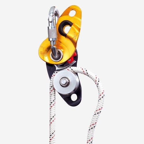 - Das Seil kann in die am Anschlagpunkt befestigte Umlenkrolle eingelegt werden.
