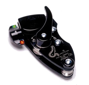 Schrauben- und hebelgesteuertes Abseilen mit Selbstverriegelungsfunktion. Kann als Seilklemme, Sicherungsgerät, Spannvorrichtung oder Rücklaufsperre verwendet werden. Leichte Alu-Ausführung. Kann das Gewicht von zwei Personen tragen. Automatische Geschwindigkeitssteuerung, unverriegelt. Automatische Geschwindigkeitssteuerung, verriegelt.