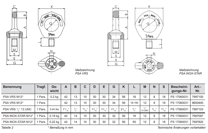 | 7997820 | 1 Personsicherung | Duplexstahl 1.4462 | M12 / 1/2" | 50 | 0,22 kg | — | |