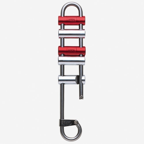 - Die Reibung kann während der Abseilfahrt je nach Eigengewicht des Seils gesteuert werden. Das untere Bremsglied kann leicht eingesetzt und entfernt werden.