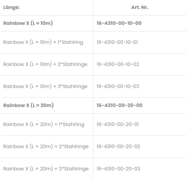 | Artikel-Nr. | Version | Länge | Farbe | Gewicht | LD | ND | UVP | |