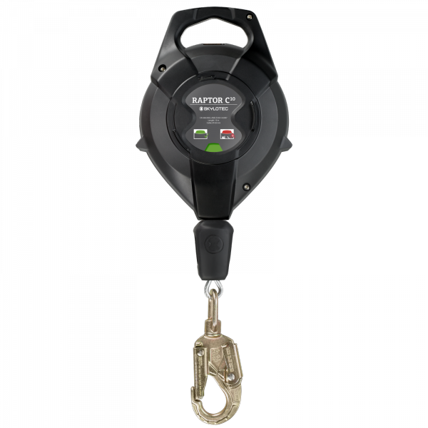 Das Höhensicherungsgerät RAPTOR definiert das Thema Sicherheit neu, denn das Gerät verfügt über zwei für den Anwender sichtbare Fallindikatoren. Sie zeigen die Funktionsfähigkeit des Gerätes bereits von außen an. Eine rote Anzeige warnt den Anwender, sobald das Gerät überprüft werden muss. RAPTOR ist modular aufgebaut, sodass Bestandteile einfach einzeln ausgetauscht werden können, was Revisionszeiten und Instandhaltungskosten senkt. Ein energieabsorbierender Einlaufdämpfer schützt das Gerätegehäuse und die innenliegende Mechanik. Mit RAPTOR über Kopf angeschlagen, ist das sichere Arbeiten bis zu einem Winkel von 45° mit einer seitlichen Auslenkung von max. 1,5 m möglich. Die durchdachte Gehäusekonstruktion ermöglicht eine platzsparende und gerätschonende Lagerung. Mit einem DataMatrix-Code kann das Gerät in der HOMEBASE verwaltet werden. In fünf verschiedenen Ausführungen erhältlich: Variante mit verzinktem Stahlseil in den Längen 6, 10 und 20 m, Variante mit Textilband in den Längen 6 und 8 m.
