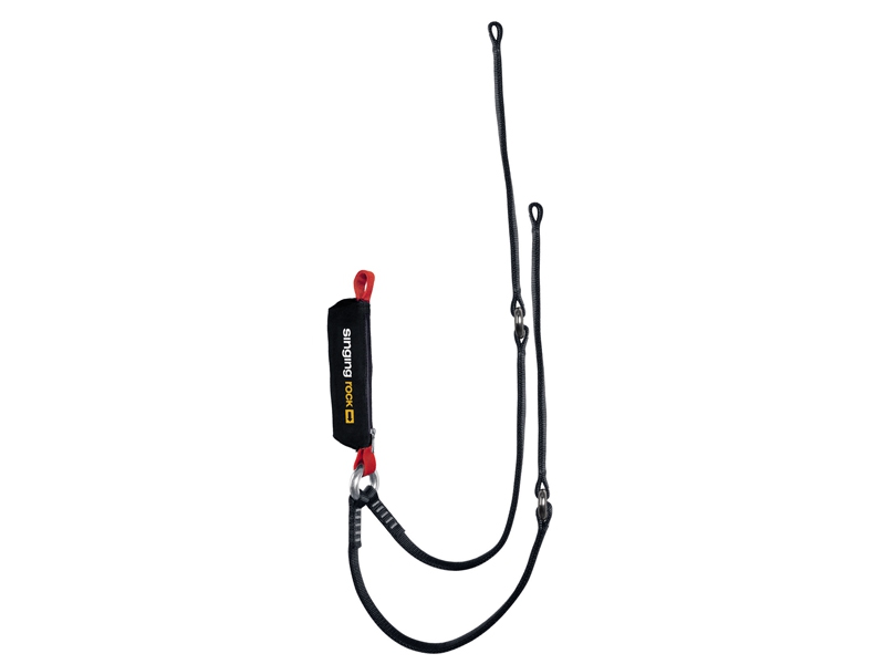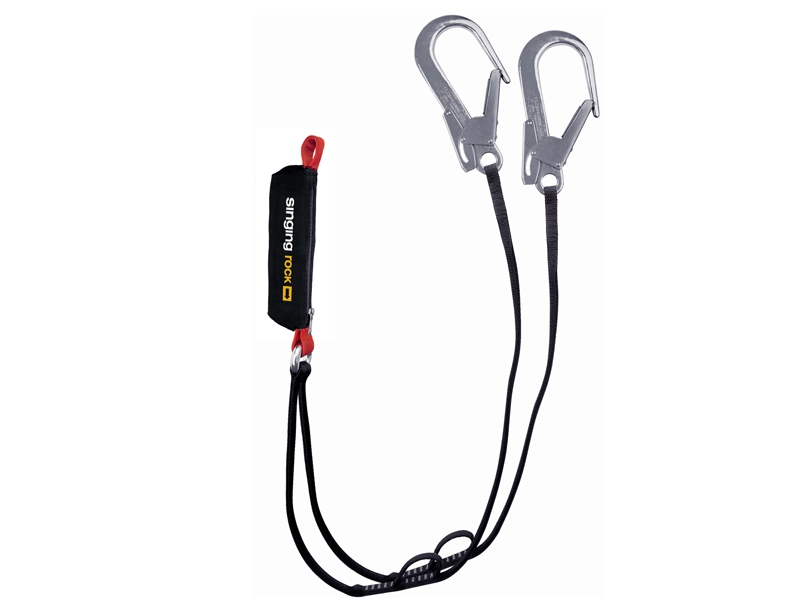 (maximum length including connectors and shock absorber cannot extend 2 m) - carabiners can be fixed by a plastic holder which also protects webbing against wearing trough