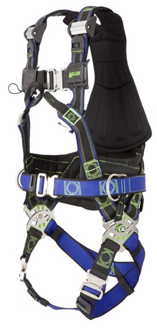 3-Punkt-Auffanggurt zur Verwendung mit einer Fallschutzvorrichtung und einem geeignetem Anschlagpunkt. Dank seiner einzigartigen Revolution-Technologie und einer Vielzahl an Schlüsselfunktionen eignet sich der robuste Miller Revolution Auffanggurt ideal für Gerüst-, Stahl- und Turmbau sowie Wartungsarbeiten.