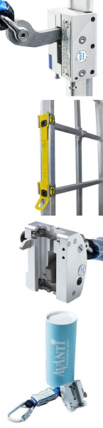 Der Avanti Fallschutz ist ein Sicherheitssystem für Servicemitarbeiter, die auf der Leiter hinauf und hinab steigen. Deshalb hat Avanti einen Anschlagpunkt entwickelt, der überall an der Leiter angebracht werden kann. Mit einem zusätzlichen Karabiner, den er an seinem Sicherheitsgurt trägt, kann sich der Servicemitarbeiter mit dem Anschlagpunkt verbinden und dann gefahrlos arbeiten.