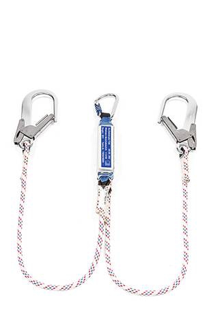 Verbindungsmittel S12KM (Kernmantelseil) nach EN 354/355, Y-Ausführung, einerseits Bandfalldämpfer FD40 mit Trilockhaken MTK 2461, andererseits 2x Rohrhaken RH60