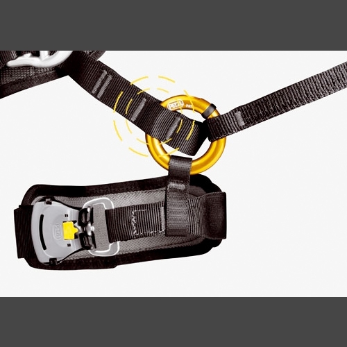 - Die beweglichen seitlichen Halteösen passen sich bei seitlicher Fortbewegung der Ausrichtung des Verbindungsmittels an.