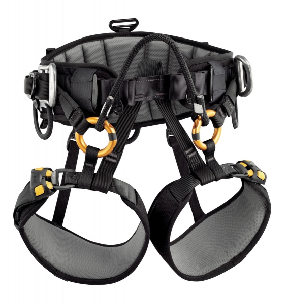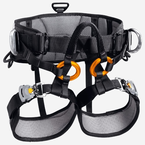 - Für den Aufstieg am Einfachstrang konzipierter Gurt: ventrale Halteöse zum Einhängen eines mechanischen Prusik ZIGZAG oder ZIGZAG PLUS mit den Zubehören CHICANE und KNEE ASCENT und eine rückseitige Schnalle zum Installieren einer CROLL-Bruststeigklemme mit einem SECUR-Schulterträger.