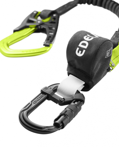 I-Verbindungsmittel mit elastischem Arm und DSG 2500 GIANT Handballenkarabiner. Die einfache Handhabung und große Schnapperöffnung des Karabiners machen das Set besonders geeignet für Anwendungen im Gerüstbau. Der integrierte Bandfalldämpfer erlaubt eine hohe maximale Nutzlast von 140 kg. Das SHOCKSTOP- I 140 GIANT ist als System sowie der Karabiner einzeln kantengeprüft.