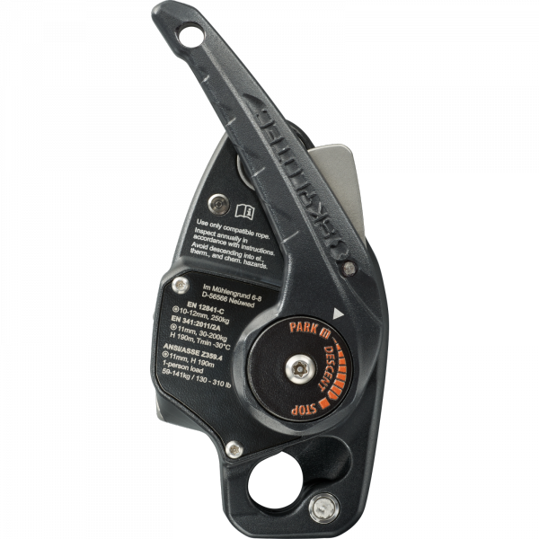 automatisch schließender Hebel hat einen besonders kleinen Bewegungsradius, sodass du schnell, präzise und dadurch komfortabler und sicherer arbeiten kannst. Während der Seilbelegung, die intuitiv und einfach funktioniert, kann der Karabiner am Gurt mit dem Gerät verbunden bleiben. Den Seilverlauf haben wir so konzipiert, dass das