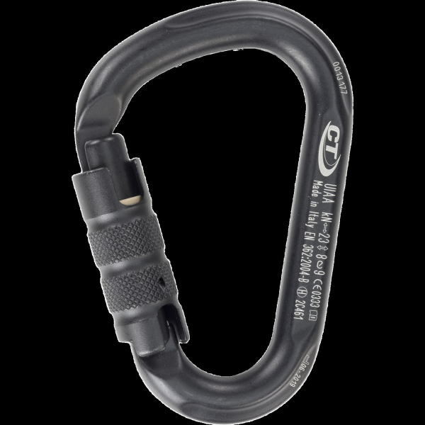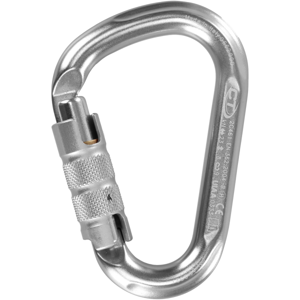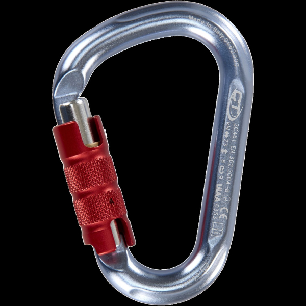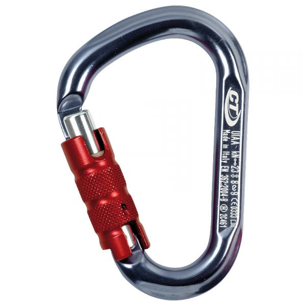 HMS-Karabiner aus Aluminiumlegierung mit automatischem Triplexverschluss, für traditionelles Klettern, Sportklettern und Alpinismus im Allgemeinen konzipiert.