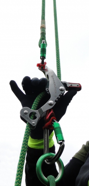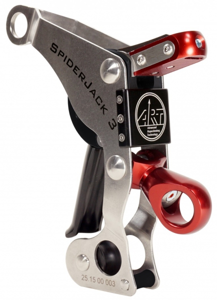 Speziell für die Seilklettertechnik entwickeltes, multifunktionales und selbstblockierendes Seilsicherungsgerät für das laufende Doppelseil. Das Seil läuft direkt vor dem Kletterer durch das Gerät. Deshalb ist es ganz einfach, das Seil ein- oder beidhändig durch das Gerät zu füttern. Der SpiderJack 3 kann außerdem sehr leicht aus der Sicherungsposition gelöst werden. Die Daumenbremse lässt sich ebenfalls sehr leicht bedienen. Dadurch ist nur wenig Kraft notwendig, um die Geschwindigkeit beim Abseilen zu dosieren. Das gibt ein sicheres Gefühl beim Klettern. Zusätzlich bietet der SpiderJack 3 ein Maximum an Sicherheit beim Arbeiten dank des Verriegelungsmechanismus. Der Rahmen des SpiderJack 3 ist aus hochwertigem Edelstahl gefertigt, welcher wesentlich flexibler ist als Aluminium. Daher ist die Wahrscheinlichkeit des Versagens (Bruch) selbst unter höchster Belastung (verkanten) äußerst gering.