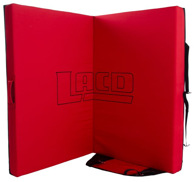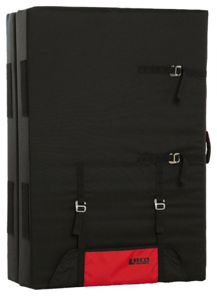 Das Spotmaster 2.0 Crashpad von LACD ist für geübte Boulderer und Einsteiger gleichermaßen gut geeignet. Bei diesem Crash Pad passt das Verhältnis von Fläche, Dicke, Dämpfung und Gewicht ideal zusammen. Im geschlossenen Zustand ist das Crash Pad mit 1 m Höhe, 70 cm Breite und 5,3 kg Gewicht auch für längere Approaches super zu tragen. Dafür stehen entweder der seitliche Tragegriff oder die gepolsterten Rucksackträger zur Verfügung. Am Felsblock angekommen, entfaltet die Bouldermatte mit 140 cm auf 100 cm ihre volle Größe. Da der Falz in der Mitte im 45° Winkel geschnitten ist, liegt das Crashpad als perfekte und einheitliche Landefläche. ohne das Verletzungsrisiko, das bei einer geraden Falz entsteht. Das hochwertige LACD Crashpad ist mit drei unterschiedlichen Schaumstofflagen nach dem Prinzip der Niedersprungmatten aufgebaut. Die oberste Schaumstoffschicht (3,5 cm) besteht aus hartem Schaumstoff, während die mittlere Schicht (5 cm) mit ihrem weichen Material für die zuverlässige Dämpfung zuständig ist. Ganz unten bietet eine dünne (0,5 cm) Lage aus hartem Schaum einen soliden Boden. Mit den praktischen Gurtbändern und den einstellbaren Schnallen aus Aluminium ist das Spotmaster 2.0 schnell und sicher verstaut. Das Flap auf der Unterseite schützt das Pad vor Beschädigungen und kann ergänzend auch für den Transport von Chalkbag und Boulderschuhen verwendet werden.