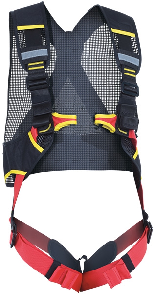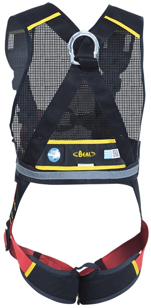 - Leichter und kompakter Auffanggurt mit integrierter Weste und einer sternalen und einer dorsalen Auffangöse.