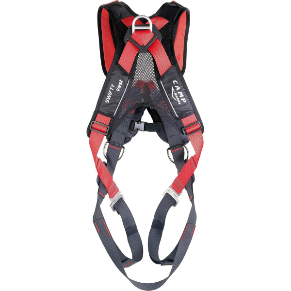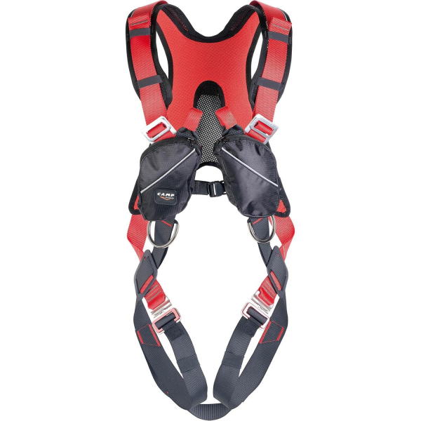 - 2 Auffangösen: 1 doppelte Bandöse an der Brust, 1 aus Stahl am Rücken. Zwei Materialschlaufen.