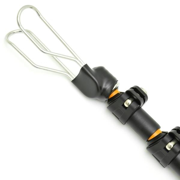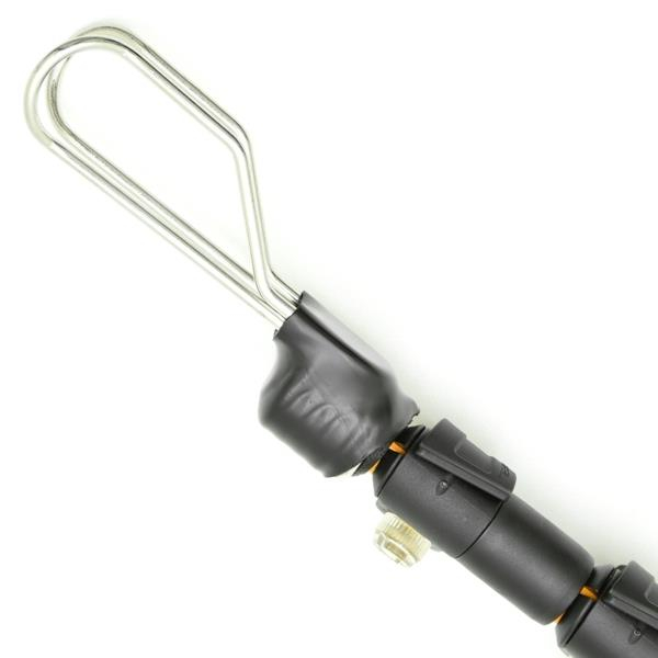 Teleskopstange mit einem ausgeklügelten Hakensystem, das den Stecker offen hält.
