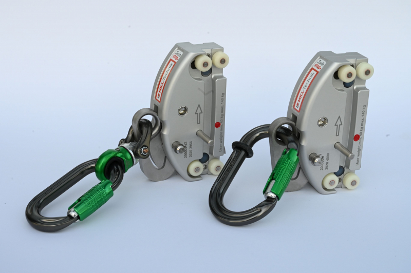 Das Twinstop® Auffanggerät ist das zentrale Element des Steigschutzprogramms der Firma MKL-Technik GmbH.