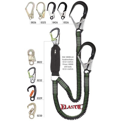 Elastisches “Y“ Verbindungsmittel mit Falldämpfer, gemäß EN 354 und EN 355. Hergestellt aus robustem, elastischem, 35 mm breitem Schlauchband. Bandfalldämpfer mit zuverlässigem und sehr schonendem Aufreißverhalten. Karabinerhaken nach Ihrer Wahl. Länge 2 m.