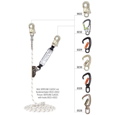 Mitlaufendes Auffangerät an beweglicher Führung. Seilkürzer aus verzinktem Stahl. Ø12 mm Kernmantelseil mit vernähten Endverbindungen und Schutzkauschen. Bandfalldämpfer mit zuverlässigem und sehr schonendem Aufreißverhalten. Karabinerhaken nach Ihrer Wahl. Länge max. 50 m.