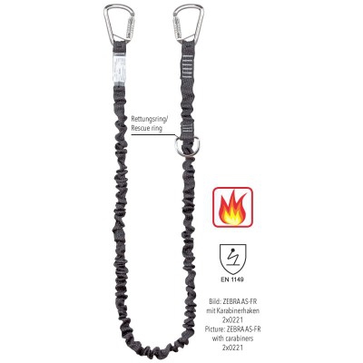 Verbindungsmittel mit Rettungsring und integriertem Falldämpfer, gemäß EN 354 und EN 355. Hergestellt aus flammhemmendem, antistatisch-ableitendem, 35 mm breitem Aramid Schlauchband. Integrierter Bandfalldämpfer mit zuverlässigem und weichem Aufreißverhalten. Chromstahl Karabinerhaken mit TRI-lock Funktion. Länge 1,5 m und 2 m.