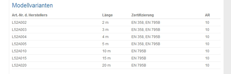 - Sie können sich direkt im Katalog über die verfügbaren Längen, Größen, Farben, unterschiedliche Zertifizierungen, evtl. integrierte Karabinertypen etc. informieren.