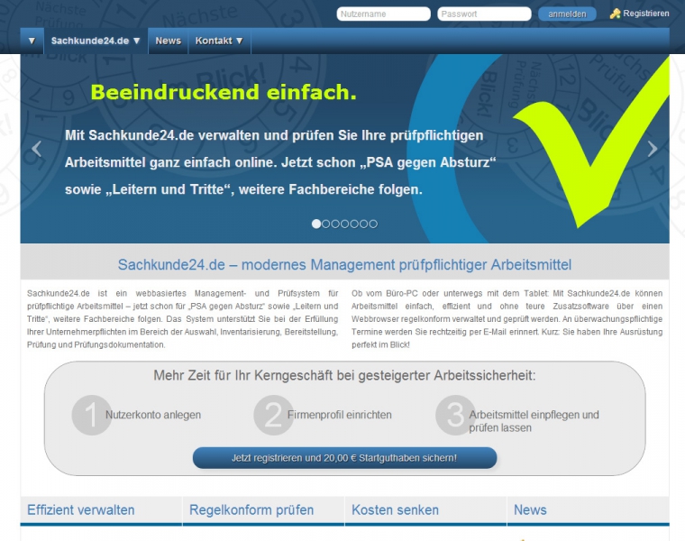 Wie bereits vielfach gewünscht, können nun auch die Leitern und Tritte einer Firma in Sachkunde24.de verwaltet und geprüft werden. Die neue Ordnung "Leitern und Tritte" kann selbstverständlich auch nachträglich für bestehende Firmen hinzugefügt werden. Sachkundige, welche die entsprechende Prüfberechtigung haben, können sich für die neue Ordnung freischalten lassen. Wie bereits aus der Ordnung "PSA gegen Absturz" bekannt, erfolgt die Einteilung der Familien sowie die Bereitstellung hilfreicher Checklisten für die Prüfung dieser Arbeitsmittel zentral durch Sachkunde24.de. Auch hier können die vorgeschlagenen Checklisten durch den sachkundigen Prüfer angepasst werden. Ein redaktionell betreutes Arbeitsmittelverzeichnis wird für "Leitern und Tritte" nicht geführt. Sie können den Bestand Ihrer Firma aber jederzeit selbst im System anlegen und dabei neben dem Namen und dem Hersteller Ihrer Leitern und Tritte auch Fotos und Dokumente, wie z. B. Gebrauchsanleitungen, zentral hinterlegen. Diese selbst angelegten Modelle gelten nur firmenintern, es erscheint also nichts davon automatisch öffentlich sichtbar im Arbeitsmittelverzeichnis.