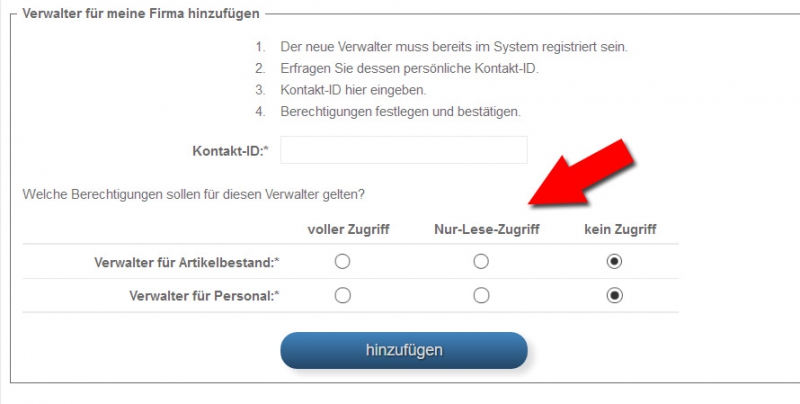 Nur-Lese-Zugriff für Verwalterberechtigungen