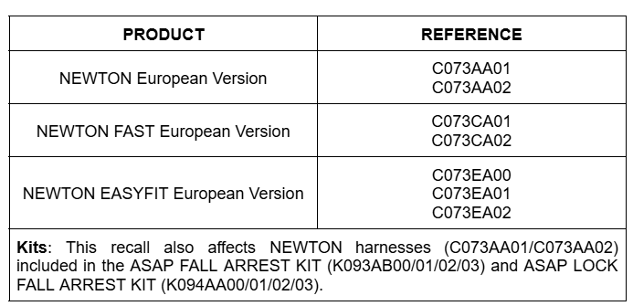 Von diesem Rückruf sind nur bestimmte Chargen der europäischen Version der NEWTON-Gurte aus dem Jahr 2022 betroffen. Die europäische Version der NEWTON-Gurte wird in den USA und Kanada nicht verkauft.