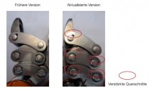 - Ein Riss an einem Verbindungsglied stellt keine unmittelbare zusätzliche Gefahr für den Anwender dar.