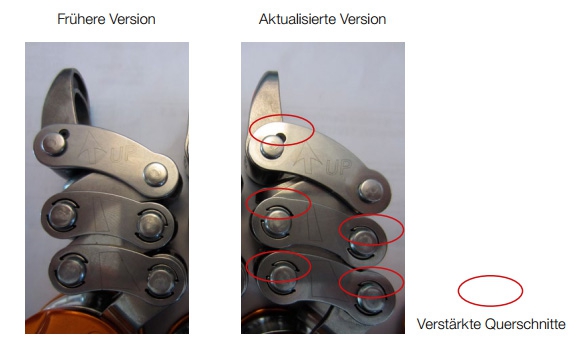 Es wurden einige Fälle von Rissen an einem der Verbindungsglieder der Kette an den Geräten ZIGZAG und ZILLON von Petzl bekannt. Unfälle wurden nicht gemeldet. Petzl hat die Ursache identifiziert und reagiert u.a. mit einer Verstärkung des Querschnitts der betroffenen Verbindungsglieder. Der eigene Bestand muss kontrolliert werden und ggf. betroffene Geräte sind einzuschicken. Es erfolgt kein genereller Produkt-Rückruf! Angesichts der geringen Anzahl der beschädigten Verbindungsglieder sowie der Tatsache, dass diese Risse kein unmittelbares zusätzliches Risiko für den Anwender darstellen, werden lediglich die beschädigten Geräte im Garantieverfahren ausgetauscht. Die Garantiedauer bezüglich dieses Fehlers wurde auf zehn Jahre erweitert.