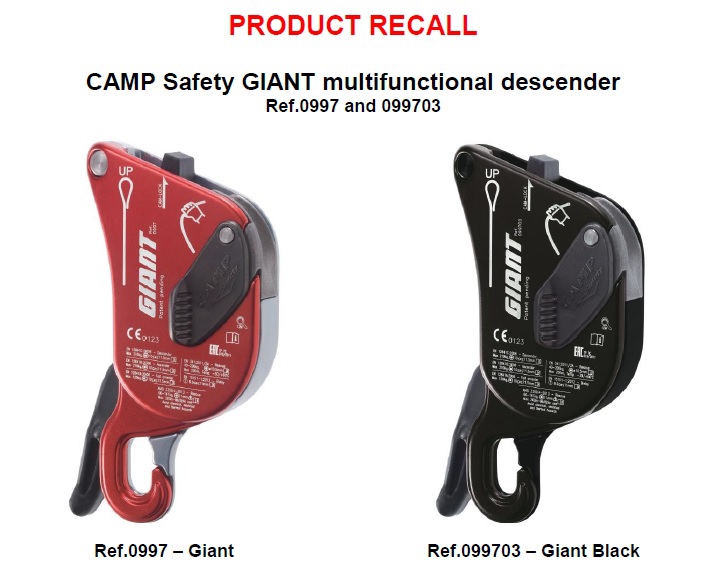 Bitte stellen Sie die weitere Benutzung der genannten sofort Artikel ein. Aus naheliegenden Sicherheitsgründen untersagt CAMP eine weitere Nutzung selbst dann, wenn simulierte oder wirkliche Rettungssituationen nicht geplant oder zu erwarten sind.