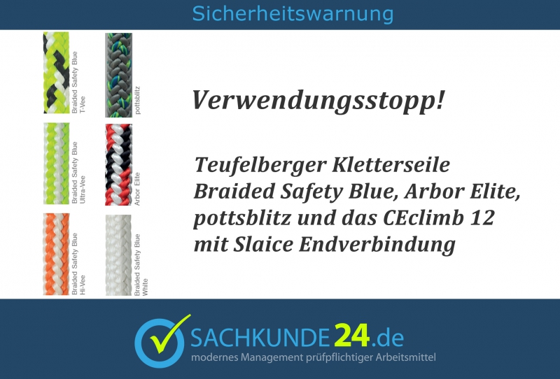 pottsblitz und CEclimb 12 auftritt. Deshalb wurde die Sicherheitswarnung auch auf diese Seile erweitert.