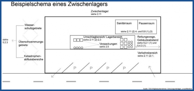 Lager im Sinne dieser TRGS sind Gebäude, Bereiche oder Räume in Gebäuden oder Bereiche im Freien, die dazu bestimmt sind, in ihnen gefährliche Abfälle zu lagern. Hierzu zählen auch Container oder Schränke.