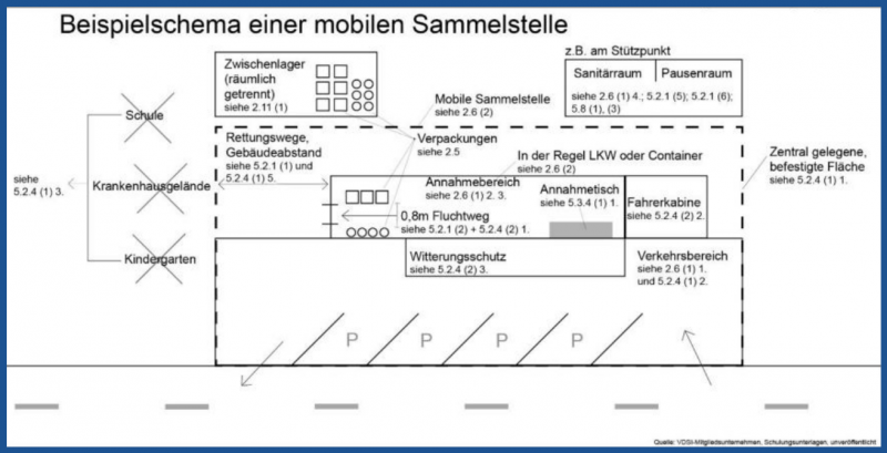 (2) Mobile Sammelstellen sind ortsveränderliche Einrichtungen (in der Regel Lastkraftwagen mit geschlossenem festen Aufbau oder Abrollcontainer). Eine spezielle Form der mobilen Sammlung ist das Direktabholsystem, bei dem gefährliche