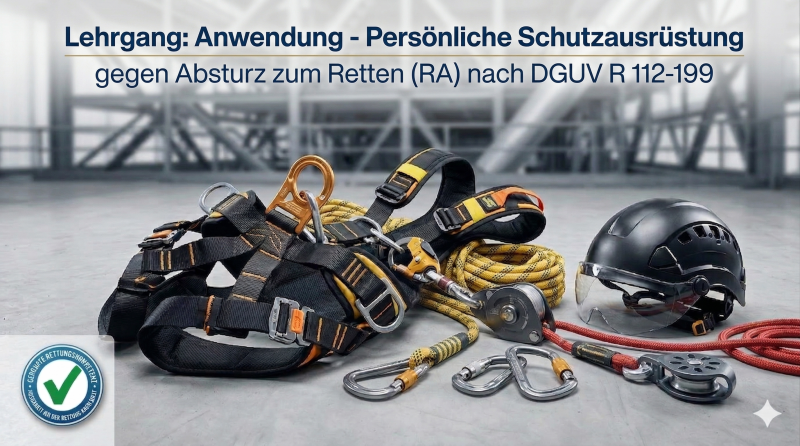 Die Schulung fokussiert das praktische Rettungstraining über zulässige Rettungssysteme der Norm DIN EN 363. Teilnehmer erlernen das relevante Wissen und Fähigkeiten um technische Rettungen von hilflos im Gurt hängenden Personen sicher durchzuführen. Die Auswahl und Benutzung von Rettungsmitteln, Rettungsgeräten und die normgerechte Nutzung von Anschlagpunkten in Rettungssituationen steht ebenso im Mittelpunkt der Ausbildung, wie Eigensicherung, bestmögliche Baustellenorganisation, Patientenversorgung und Erste Hilfe. Die erfolgreiche Teilnahme gilt als hinreichende Präqualifikation für das Seminar zur Erlangung der Sachkunde für die Prüfung Persönlicher Absturzschutzausrüstung nach DGUV Grundsatz 312-906 (RA).