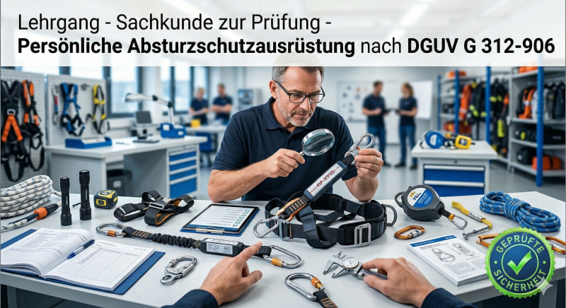 SEO-Keywords: Teilbereiche DGUV 312-906, Zertifizierung PSAgA Prüfer, Module Sachkundeschulung Absturzsicherung